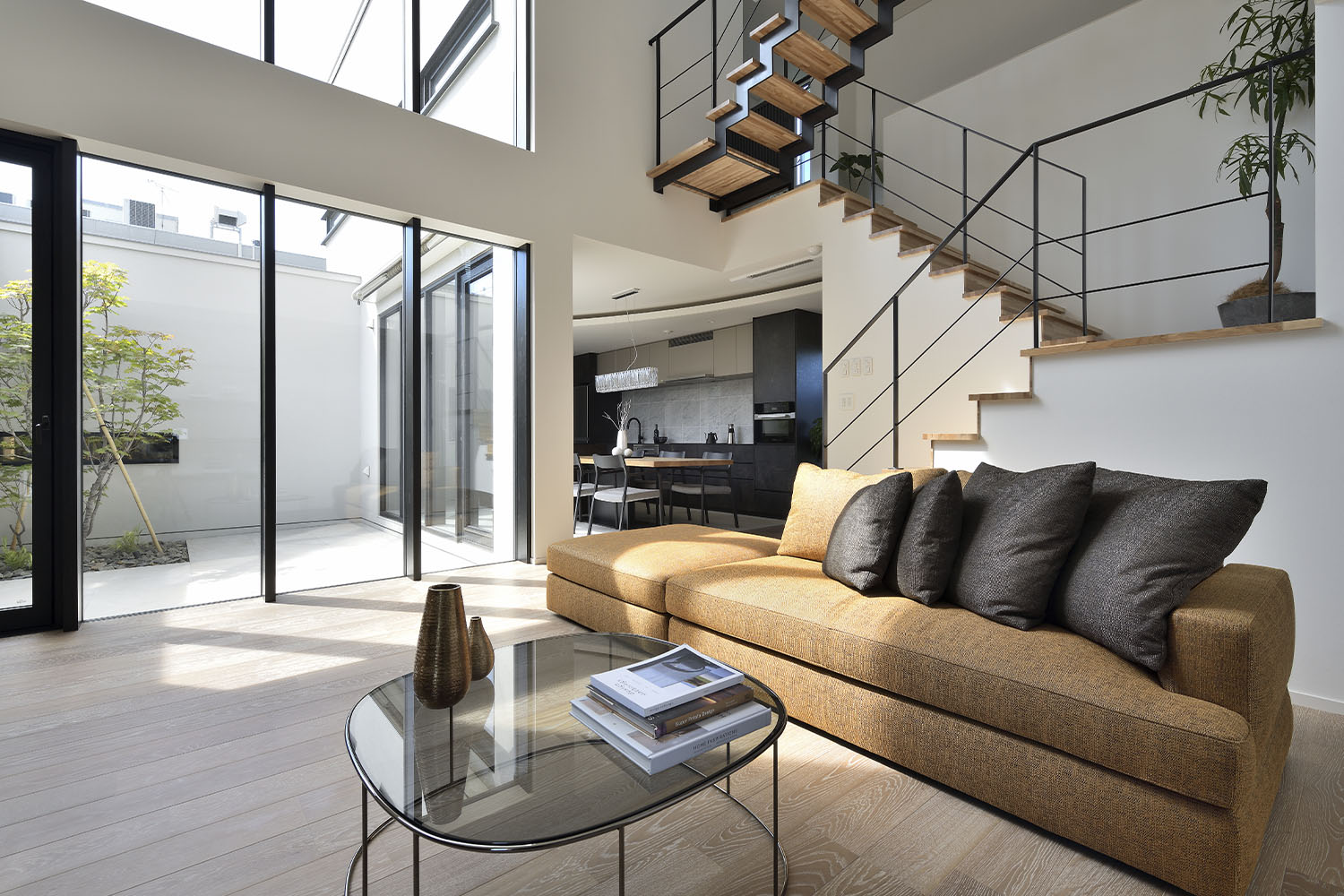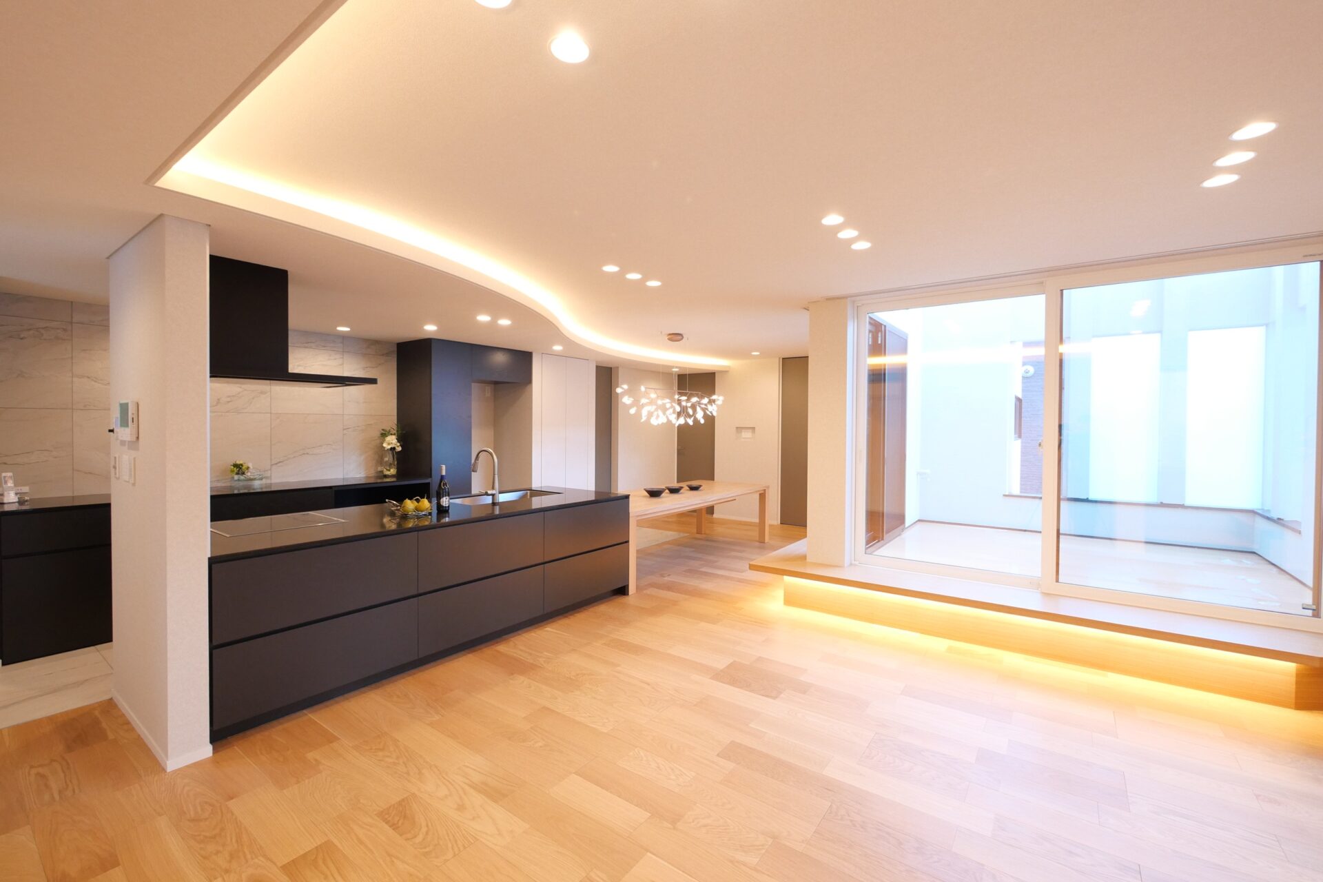 中庭にはドッグランのスペースもとり、広がりのあるLDKが魅力の住まい。