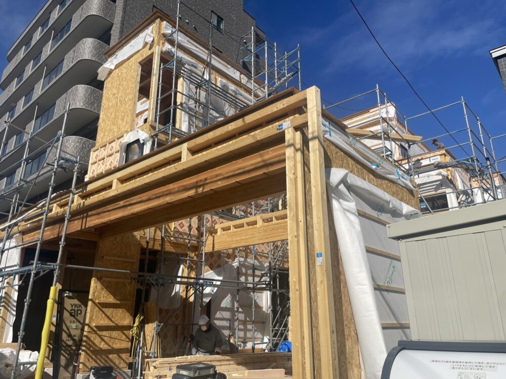 さて、中央区では3階建て二世帯住宅の工事が着々と進んでおります。