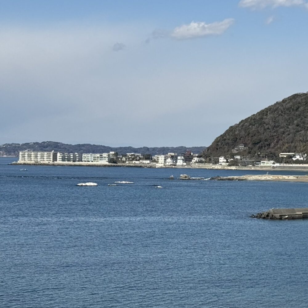 穏やかな海。もう少し早い時間帯だと富士山も見えるとか。