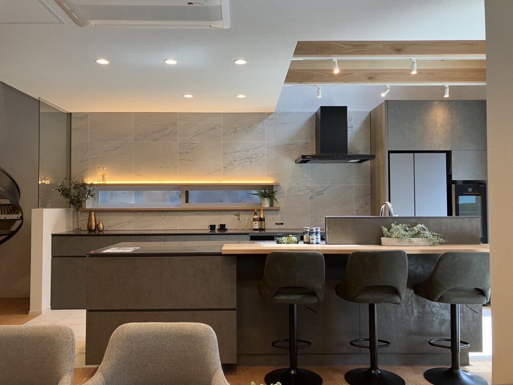 ダークグレーを基調としていますが、木のぬくもりを感じる優しい色合いに仕上がりました。