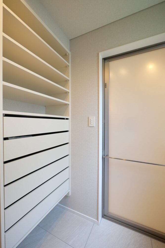 大容量タイプの収納も。ご家族全員分の着替えがここに収まるのは便利ですよね。