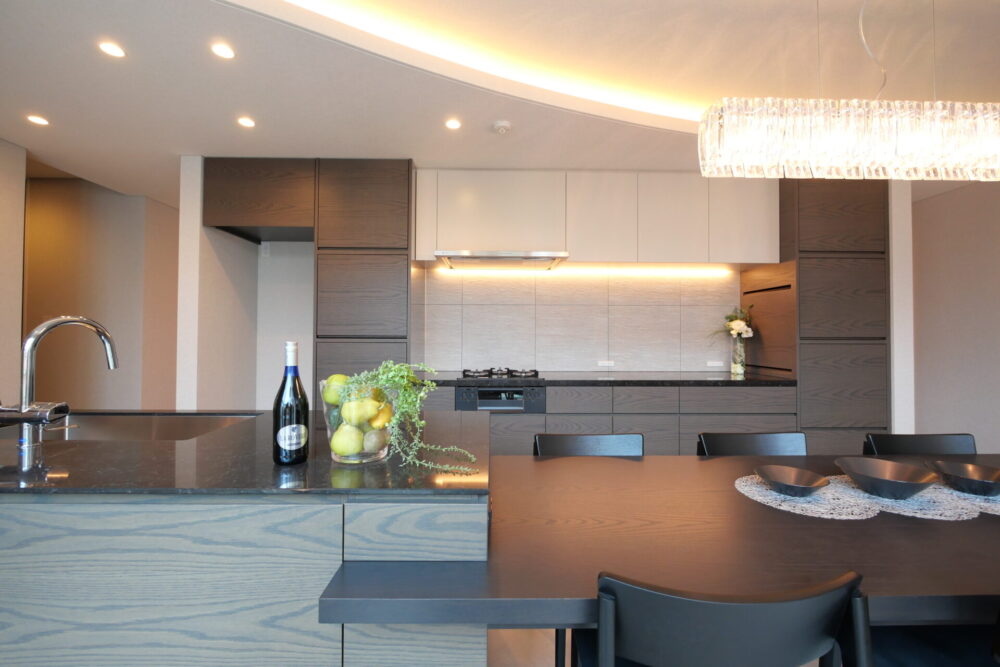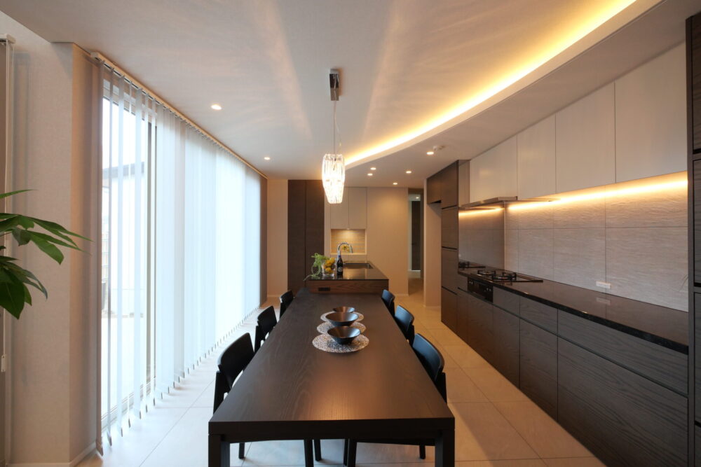 弊社の特徴でもある曲線が美しい天井間接照明。